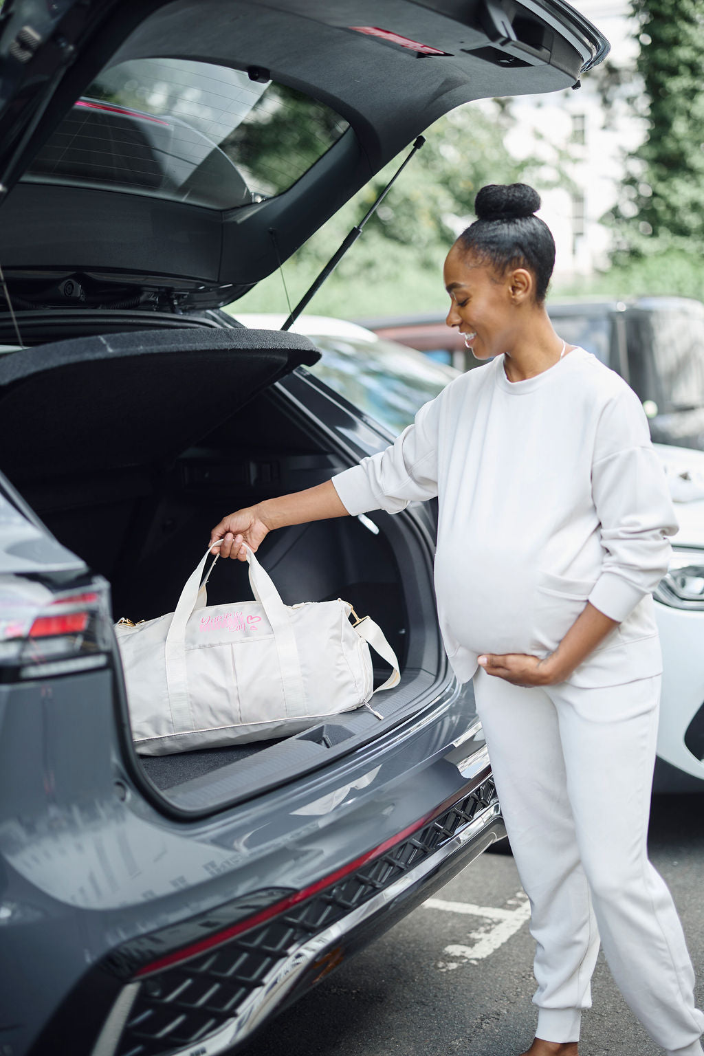 Multi-purpose stylish and functional duffle bag, measuring at 46x23x25cm. The ultimate Mom 'Bag for Life' which can be used as a carry on bag, changing bag, gym bag, travel holdall, or a spacious weekend bag.